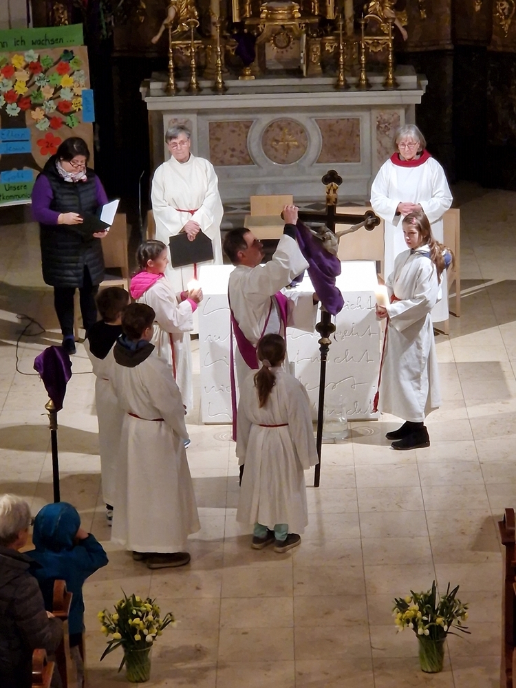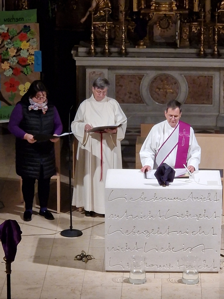 Beim Aschermittwoch-Gottesdienst mit Vikar Norbert Glaser und Diakon Michi Zepf erhielten die vielen Gläubigen, die gekommen waren, das Aschenkreuz auf die Stirn gezeichnet. Es ist ein starkes sichtbares Zeichen, das „hautnah“ an die Vergänglichkeit erinnert und uns auffordert, im Einklang mit dem Evangelium zu leben.