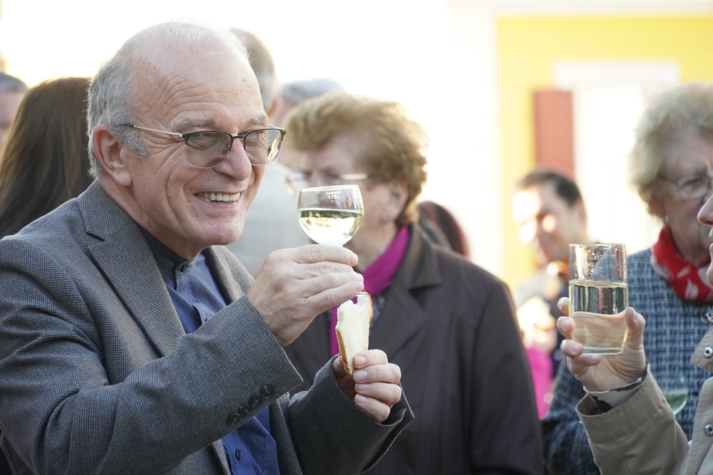 Bei der anschließenden Agape mit Brot und Wein auf dem Kirchplatz gab es dann für alle die Gelegenheit, persönlich mit Vikar Norbert Glaser auf seinen Geburtstag anzustoßen.