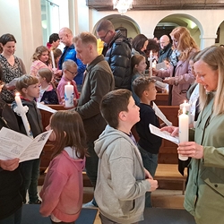 Und wie in den Jahren davor schließen wir jede Einheit mit einem Gottesdienst ab. So lernen die Kinder mit jedem Mal die Abläufe und die Antworten eines Gottesdienstes besser kennen und werden am Tag ihrer Erstkommunion richtige Profis sein!