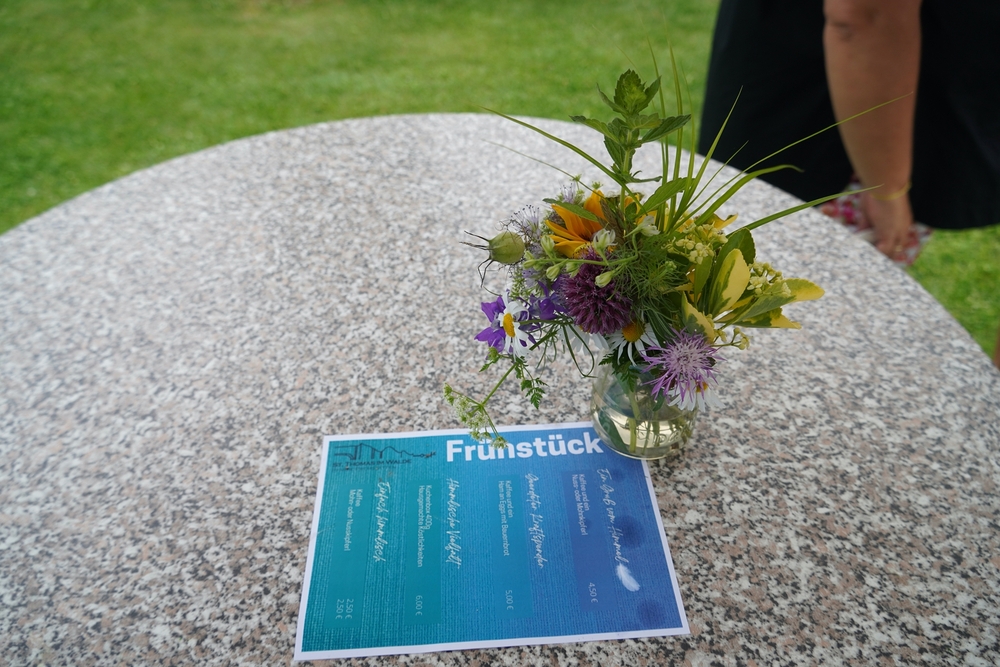 Im Zentrum der schön gestalteten Feier standen ein Taufgedächtnis mit Weihwasserritus, ein Evangelium (Mt, 6, 26-33), Blumentexte (in denen man sich mit der einen oder anderen Blumenbeschreibung ganz gut identifizieren konnte), Dankesworte sowie Fürbitten.