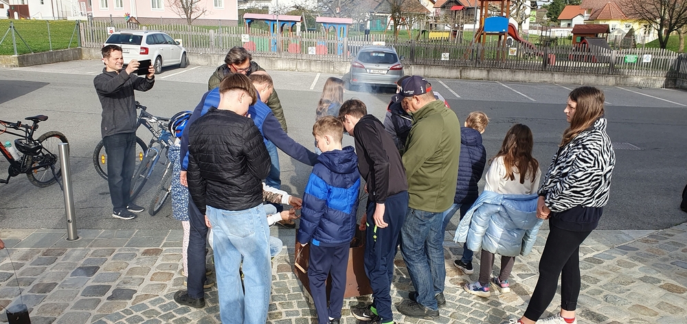 Mit Rosenkranzgebet und den Klängen der MUZ erreichte die Prozession schließlich den Kirchplatz, wo sich beim Altar vor dem Kreuz ein wunderschöner Blumenteppich befand, den die Minis am Vorabend mit großem Eifer gestaltet hatten. Diese „Augenweide“ wurde von vielen bewundert, auch von den mitfeiernden Gästen aus Wundschuh.