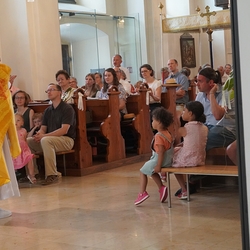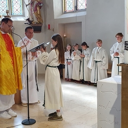 • in spielerischer Form die Antworten der hl. Messe kennen lernen und üben