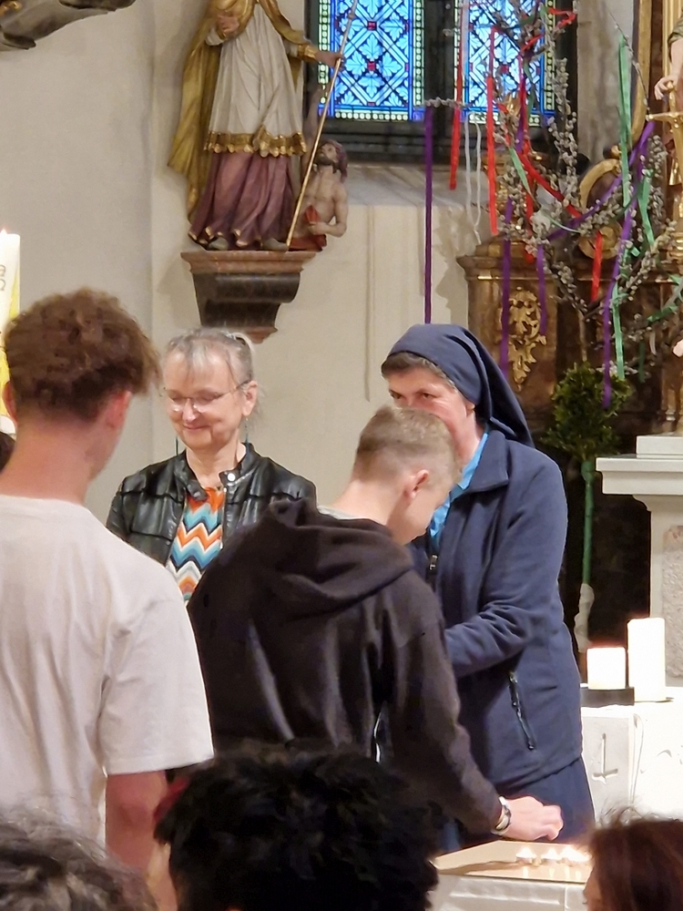 • Vigilfeier mit den Firmlingen am Freitag vor Pfingsten mit Schwester Maria und Vikar Gerhard Hatzmann