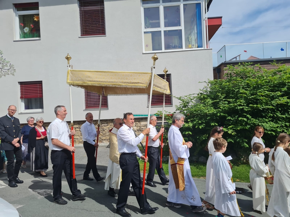 Ein herzliches DANKE allen, die liturgisch mitgewirkt haben, dass das Fronleichnamsfest so festlich und gemeinschaftlich gefeiert werden konnte. Danke auch den Vereinen - der MUZ, der FF und dem ÖKB - für ihr Dasein und Mitfeiern!