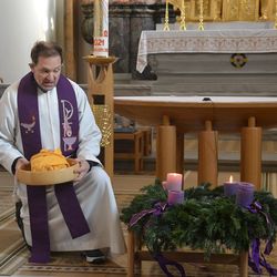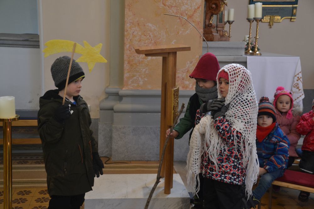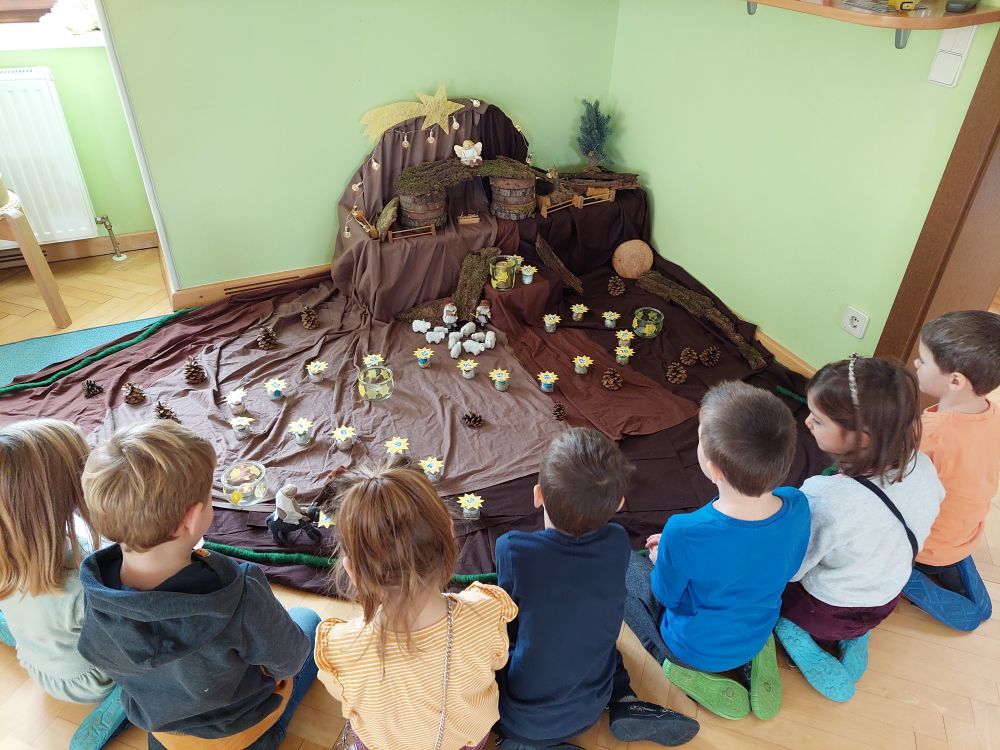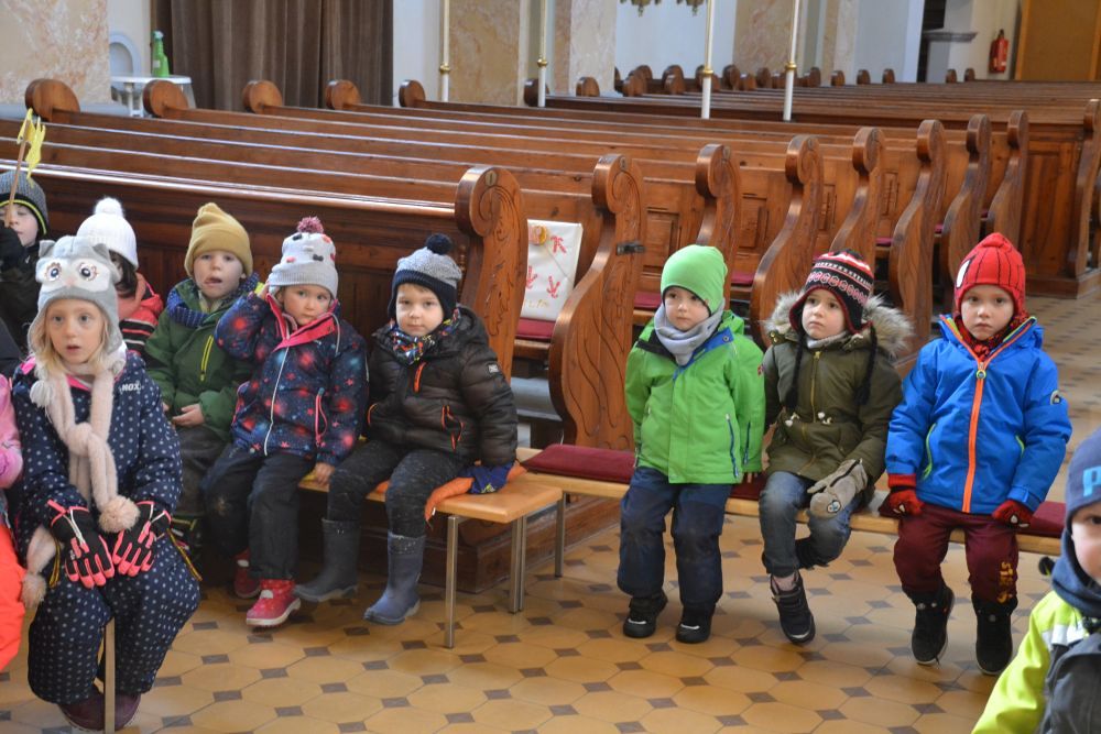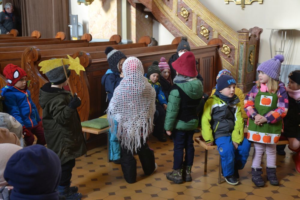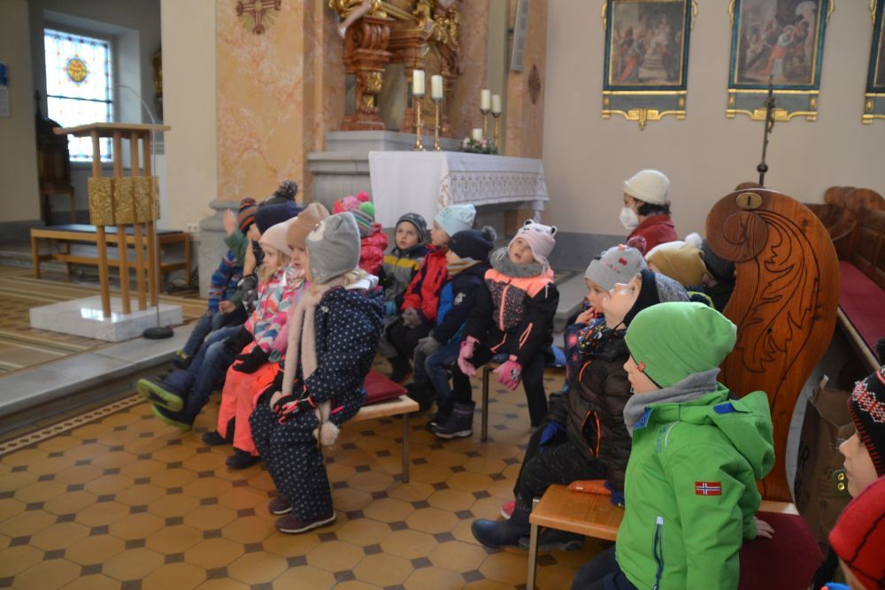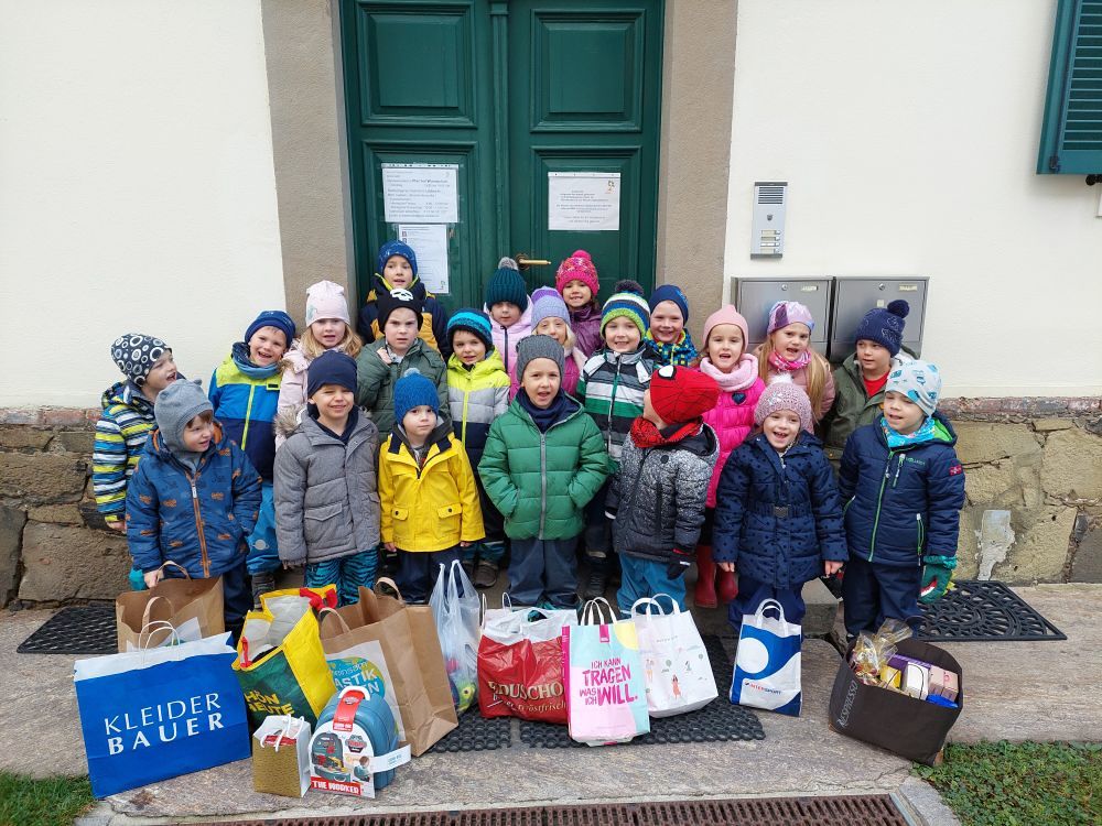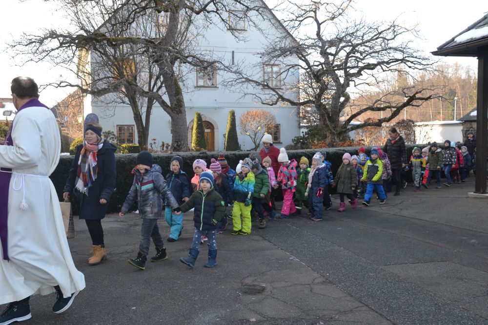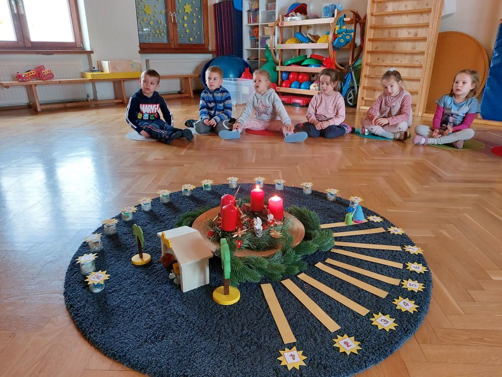 In der Pfarrkirche gestalteten die Kinder mit ihren Pädagoginnen eine Vorweihnachtsfeier. Vikar Gerhard Hatzmann zündete die Kerzen des Adventkranzes an, die Kinder spielten die Herbergssuche, Vikar Gerhard segnete alle zum Abschluß.