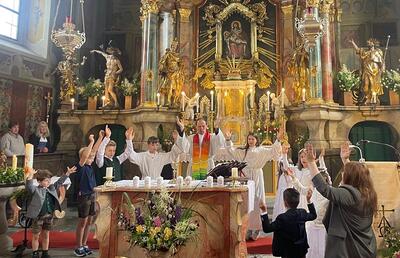 Frau Mag. Friederike Klapf hat das Heilige Grab der Pfarrkirche Landl in mühevoller und aufwändiger Arbeit restauriert, sodass es nun wieder in ursprünglichem Glanz erstrahlen kann.