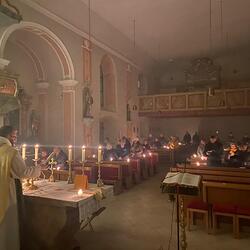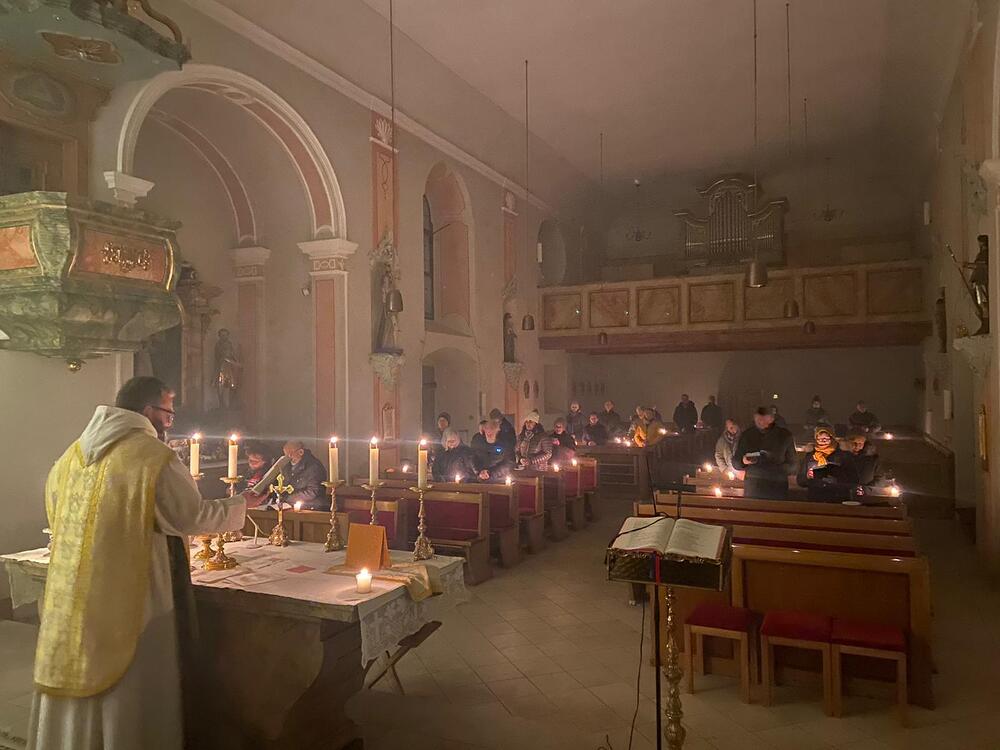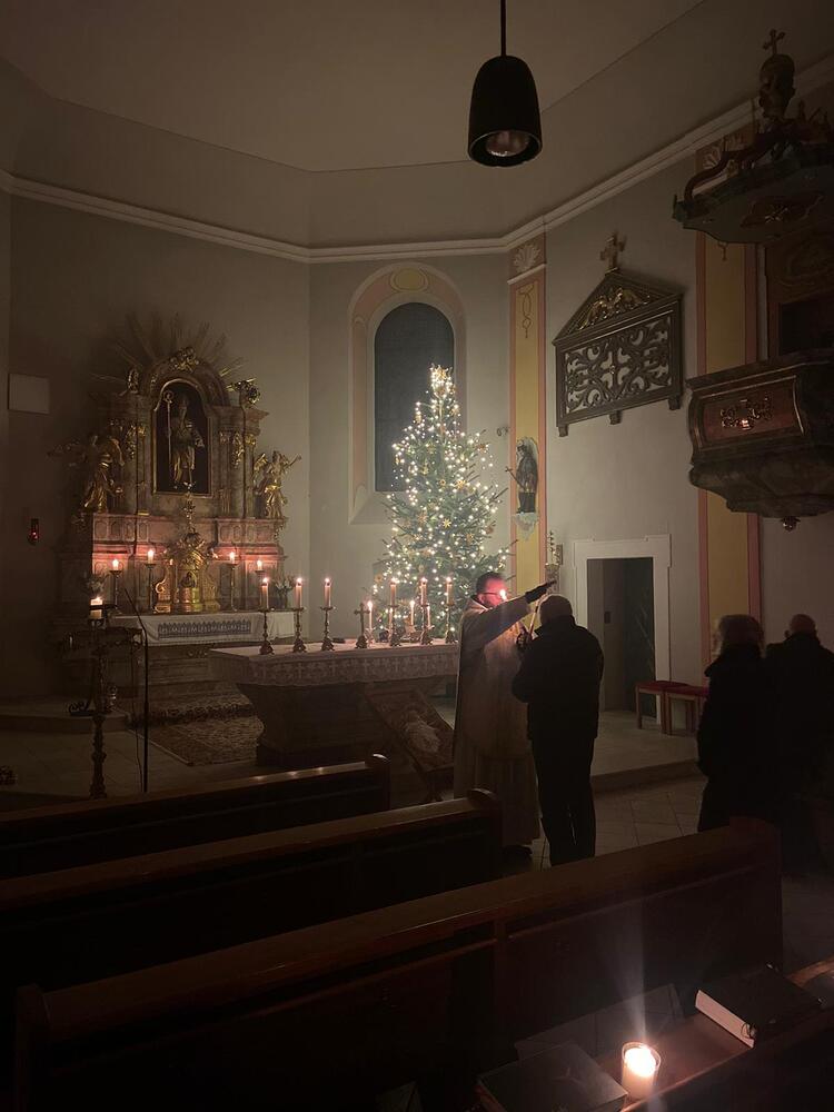 Nach der Heiligen Kommunion wurde die Altenmarkter Krippe das letzte Mal inzensiert, ein Gebet gesprochen und der Blasiussegen gespendet.