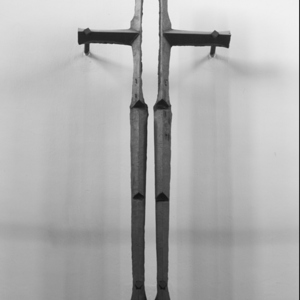 Der abstrakte Körper - der senkrechte Balken ist in zwei Stäbe geteilt - erinnert im unteren Teil an Gliedmaßen. Die Ränder des vergrößerten Leerraums im oberen Teil wirken wie aufgerissen (Leiden, Verwundung). Die Marter des Gekreuzigten wird nicht realistisch gezeigt, sondern im Zerbrechen und Auseinanderreißen angedeutet. Das Kreuz trägt keinen sichtbaren Leib, es veranlasst den Betenden, s e i n e n Christus hinzuzufügen.
